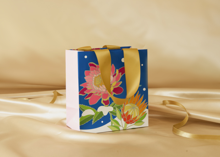 深い青色とゴールドのリボンが目を引く華やかなデザインで、冬の贈りものにもおすすめです。