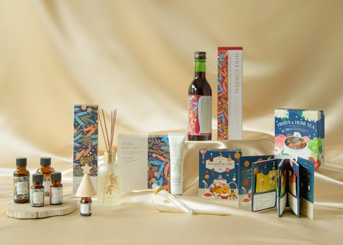 冬らしく暖かみを感じる香りのアロマやコスメをはじめ、濃厚な味わいのコーディアルやハーブティーを取りそろえたシリーズです。