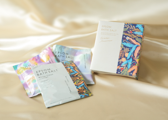 香りとうるおいのミネラル温浴を楽しめる、エプソムバスソルトのアソートセット。定番人気の2種の香りに、限定のウィンターシトラスの香りをセットにしました。